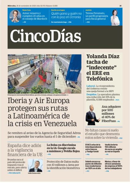 El diario Cinco Días, referente en el mundo empresarial, alcanza más de 64 mil lectores fieles diariamente. El apoyo de los expertos de mayor actualidad en el panorama económico y su condición de decano en el medio aportan a Cinco Días el prestigio y fiabilidad de un diario líder, con una gran solidez en contenidos y opinión.